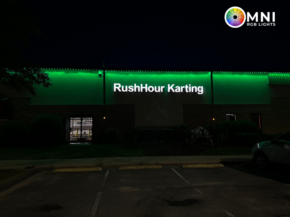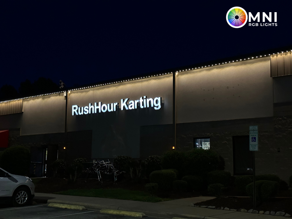 Installed along rooflines and architectural features, color-changing outdoor lighting highlights the design of your home or business while remaining nearly invisible during the day.